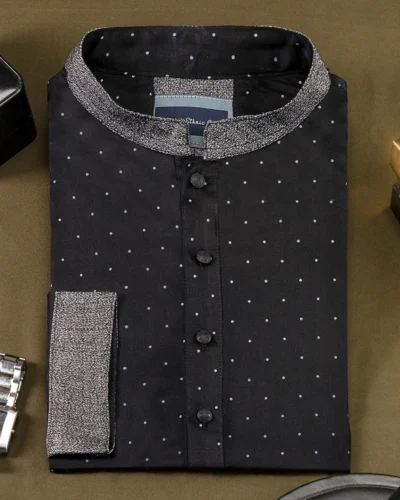 Cotton band collar regular fit woven panjabi from Zaviyar | Palatinate
