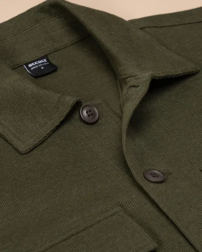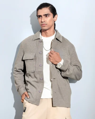 Product Description: Knit Shacket. Jacket & shirt combination . Full sleeve wide collar with cuff and button placket with large size button. Bottom hem is slightly extended .