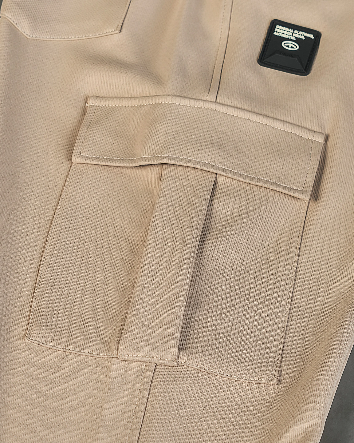 Product Description: Relaxed fit mid-rise cargo Joggers with an elasticated waistband and matching adjustable drawstring. These Joggers feature two side pockets, two mid-leg flap pockets with square logo details and a back pocket.