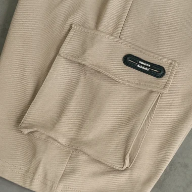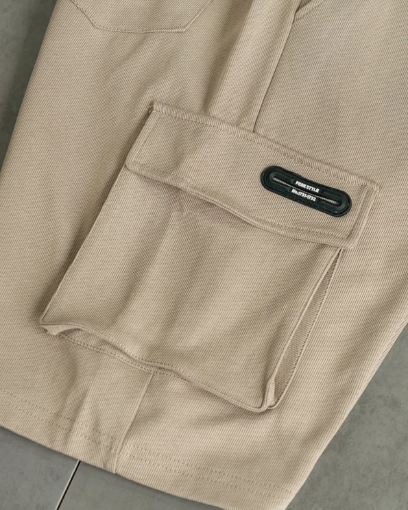 Product Description: Relaxed fit mid-rise cargo Shorts with an elasticated waistband and matching adjustable drawstring. These shorts feature 9″ inseam with two side pockets, two mid-leg flap pockets with horizontal logo details and a back pocket.