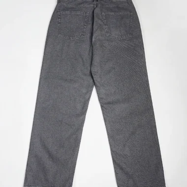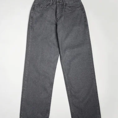 Product Description: Loose fit cotton non-stretch mid-rise denim jeans. This pant features 5 pockets, enzyme wash, zip closure and five loop waistband with button closure.