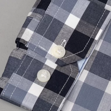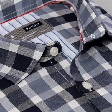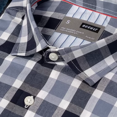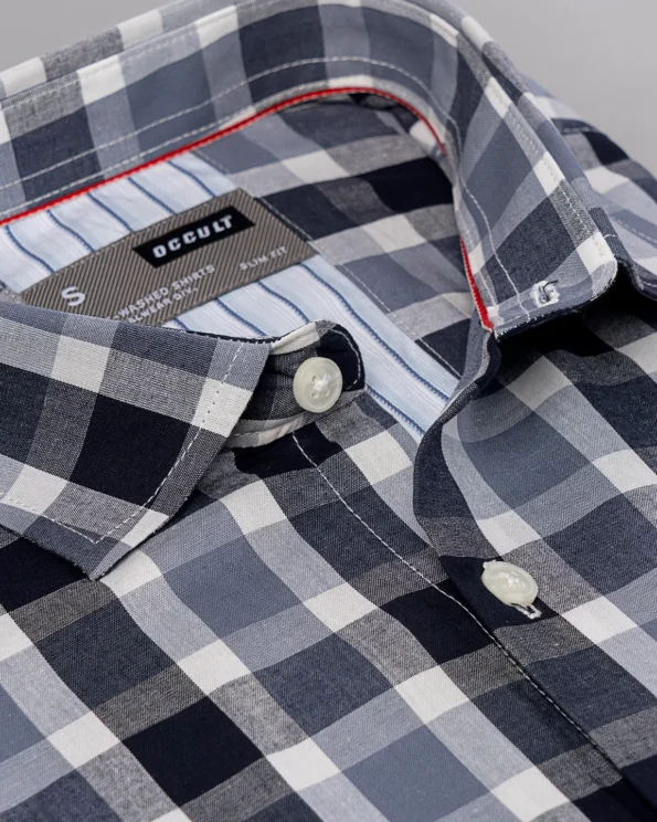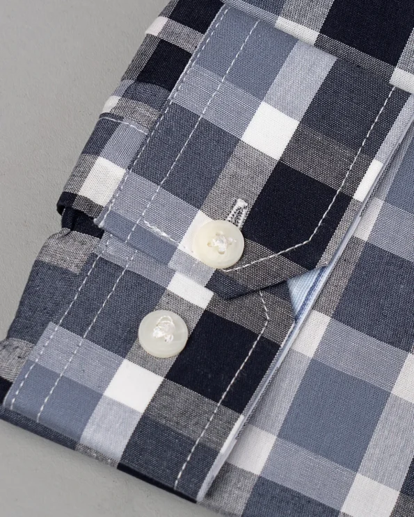 Shallow collar, slim fit Shirt, long Sleeve with gamble, back yoke straight, curve hem.