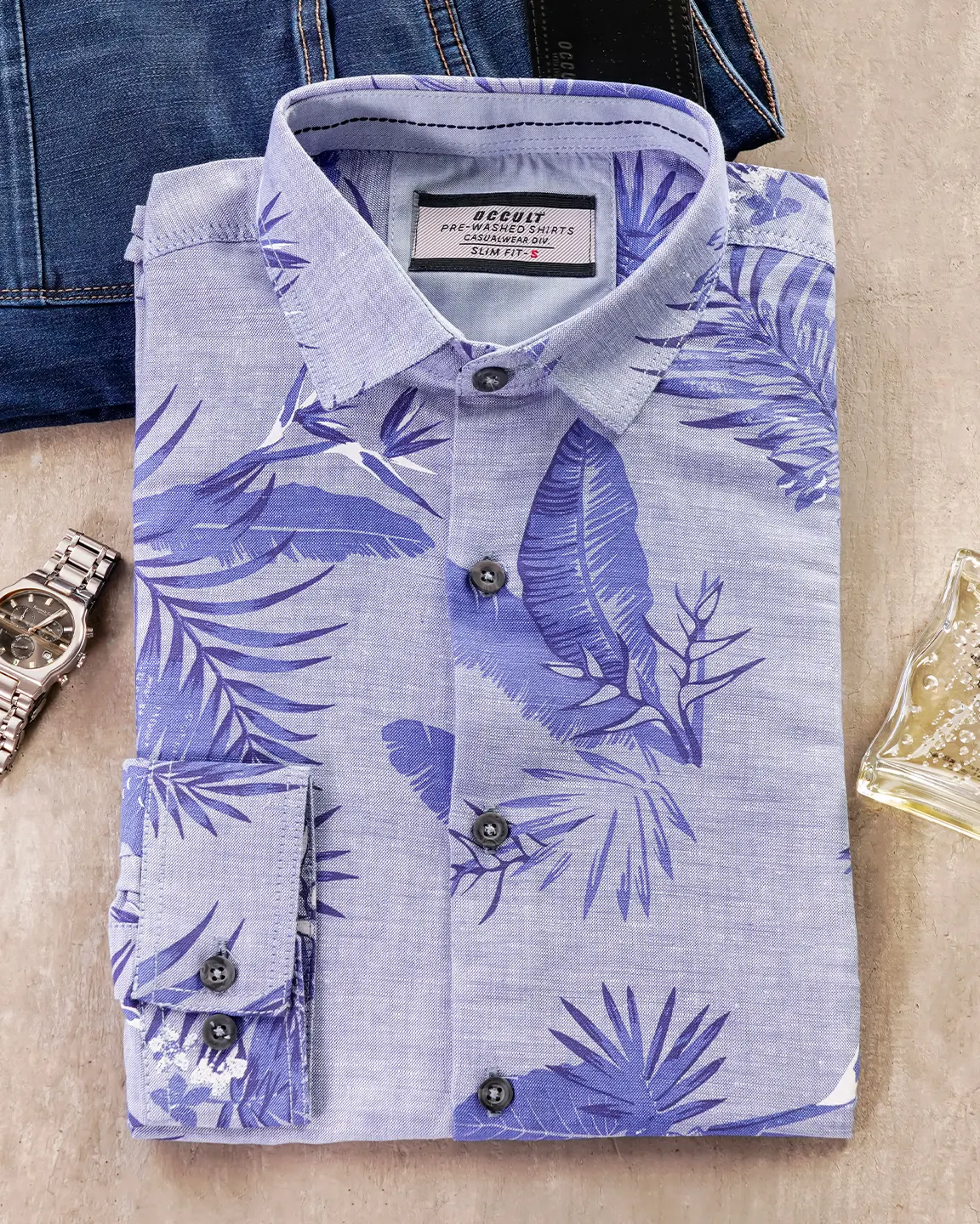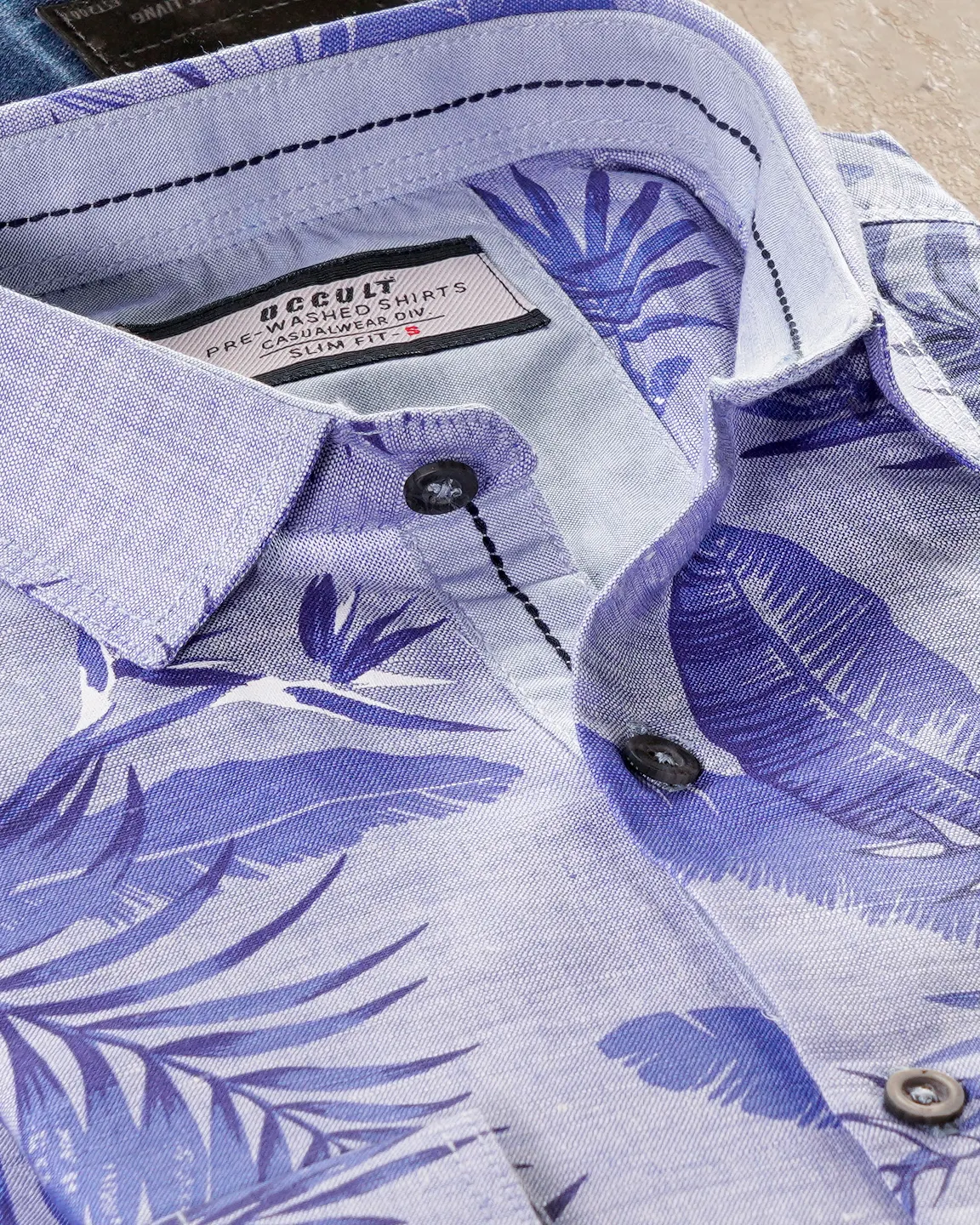 Sold OutCotton slim fit woven printed shirt | Baby Blue