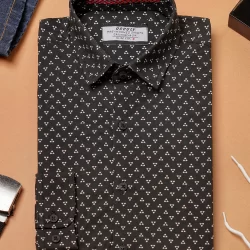 Cotton slim fit woven printed shirt | Black