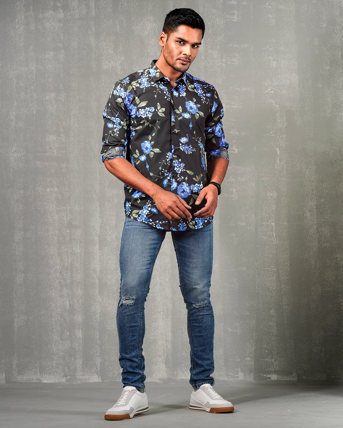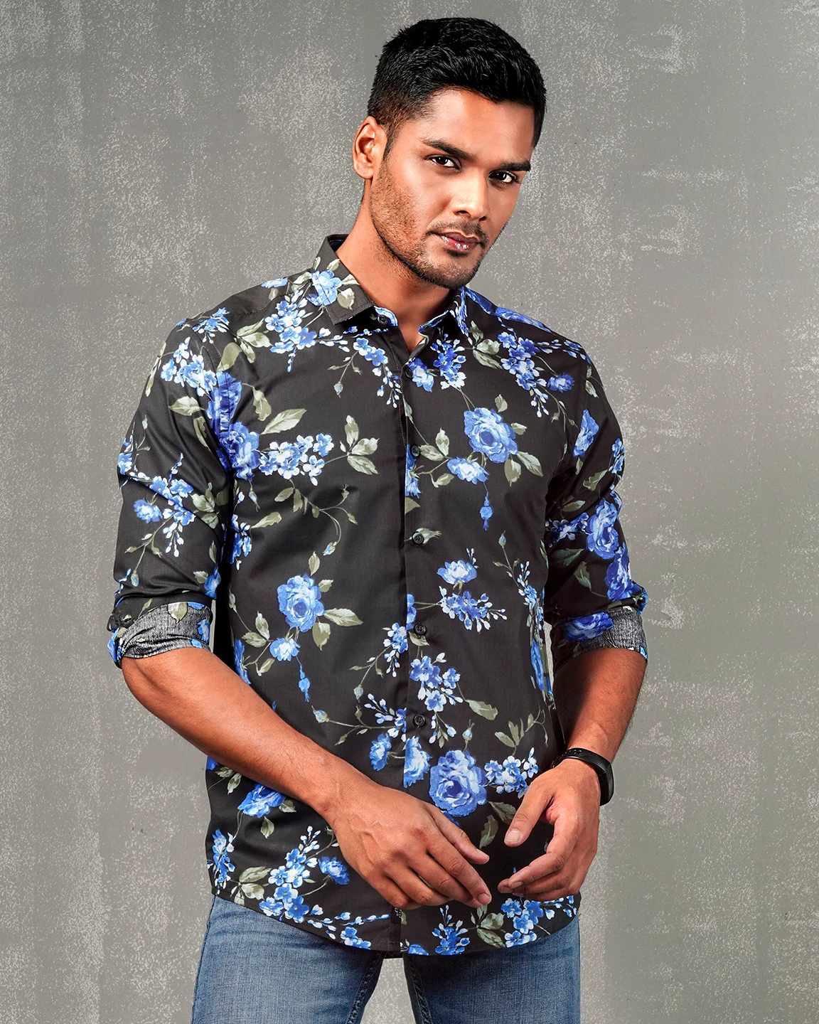 Cotton slim fit woven printed shirt | Grease