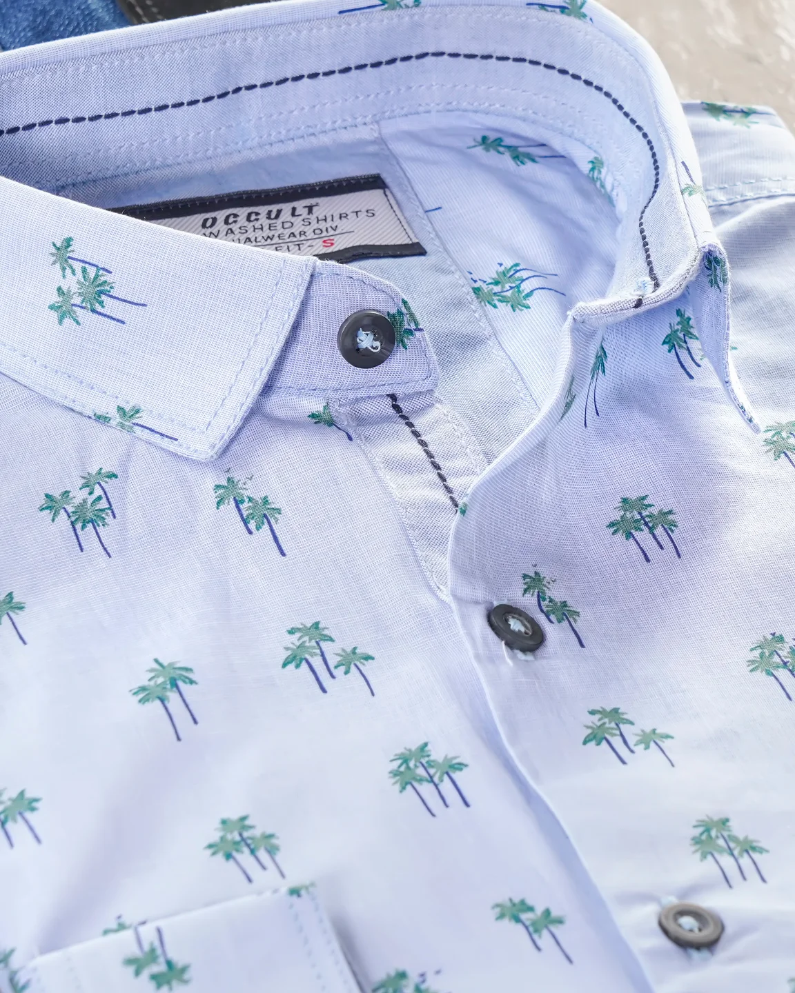 Cotton slim fit woven printed shirt | Light Blue