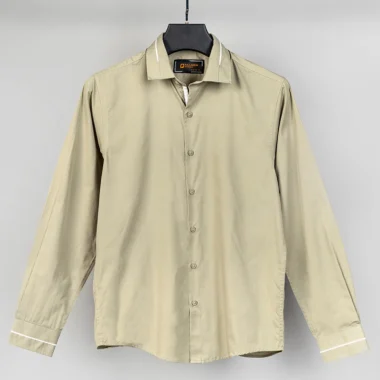 Product Description: Shallow collar, slim fit Shirt. Collar and cuff has contrast piping, long sleeves with gumble, Inner placket twill tape details, back yoke straight and curve hem.