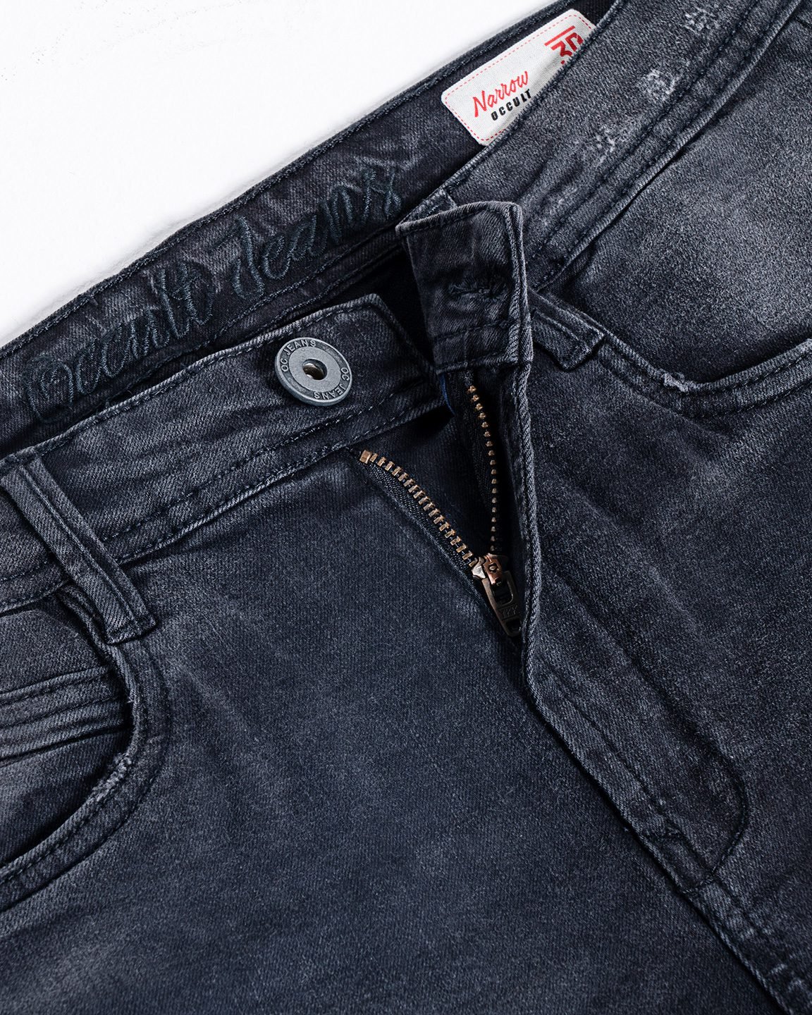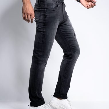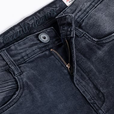 Cotton stretch narrow fit 5 pocket jeans , mid rise , zip closure , has a back yoke , font light crinkle and whisker wash ,deep navy color jeans pant.