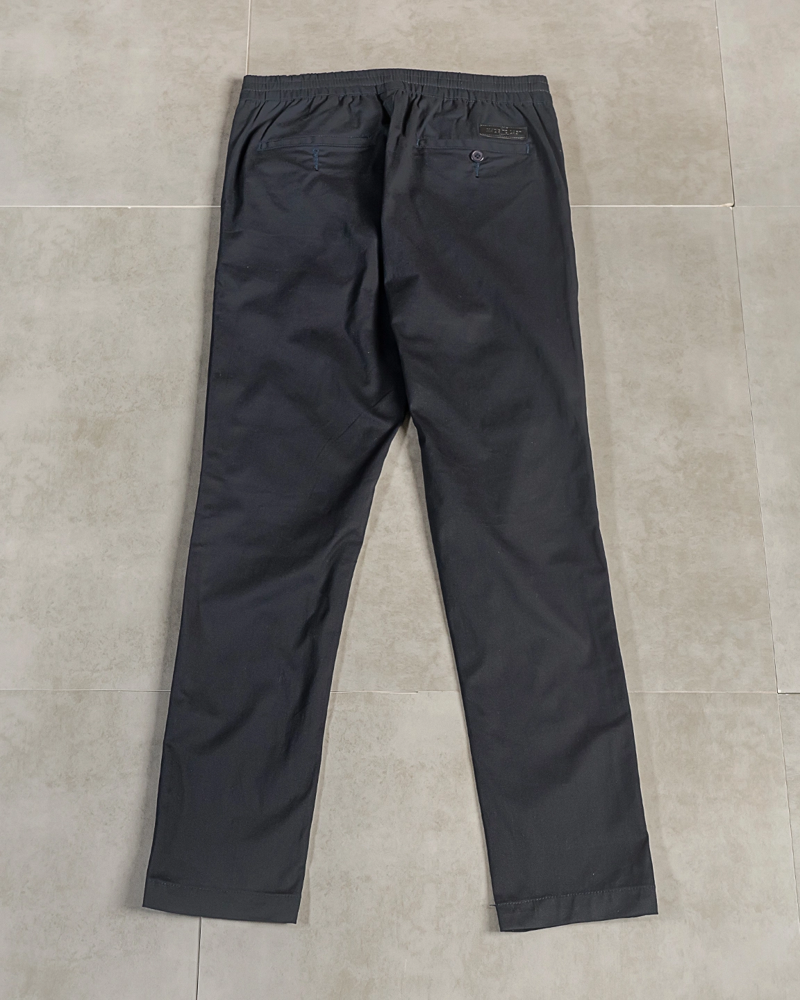 Product Description: Relax-fit pant. It is made with a stretch-infused fabric, mid-rise long pant, Zip closure. Elastic waistband with dtm drawstring & button closure. Backbone pocket with logo patch detail. Inside back rise and single has piping design.