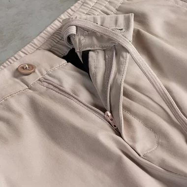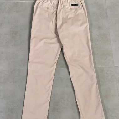 Product Description: Relax-fit pant. It is made with a stretch-infused fabric, mid-rise long pant, Zip closure. Elastic waistband with dtm drawstring & button closure. Backbone pocket with logo patch detail. Inside back rise and single has piping design.