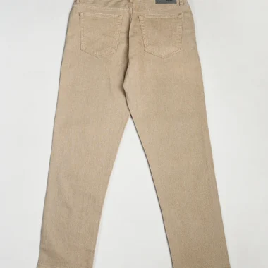 Product Description: Relaxed fit cotton stretch mid-rise denim jeans. This pant features 5 pockets, enzyme wash, zip closure and five loop waistband with button closure.