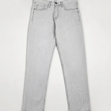 Product Description: Relaxed fit cotton stretch mid-rise denim jeans. This pant features 5 pockets, enzyme wash, zip closure and five loop waistband with button closure.