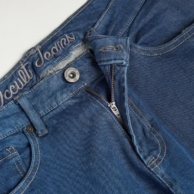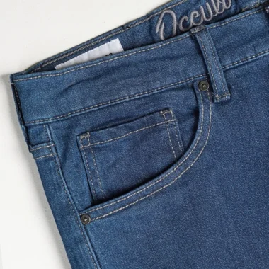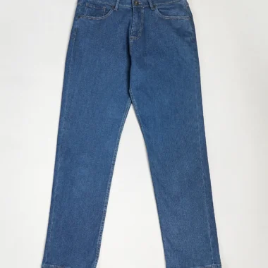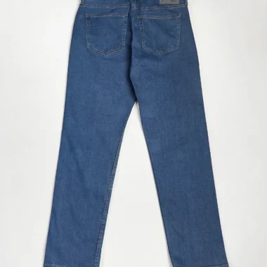 Product Description: Relaxed fit cotton stretch mid-rise denim jeans. This pant features 5 pockets, enzyme wash, zip closure and five loop waistband with button closure.