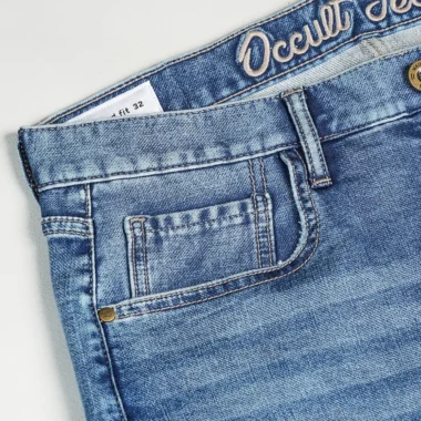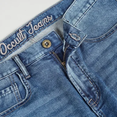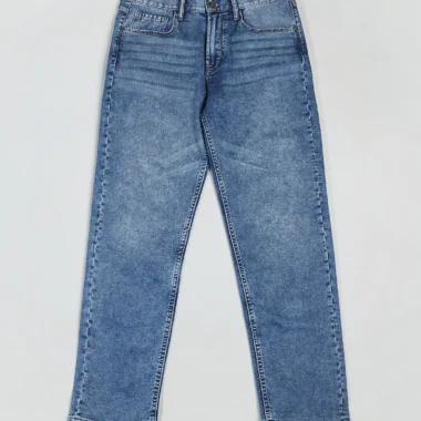 Product Description: Relaxed fit cotton stretch mid-rise denim jeans. This pant features 5 pockets, enzyme wash, zip closure and five loop waistband with button closure.