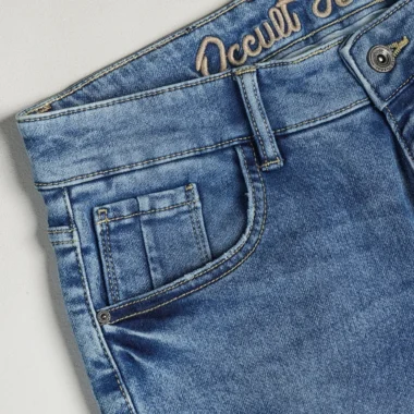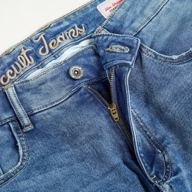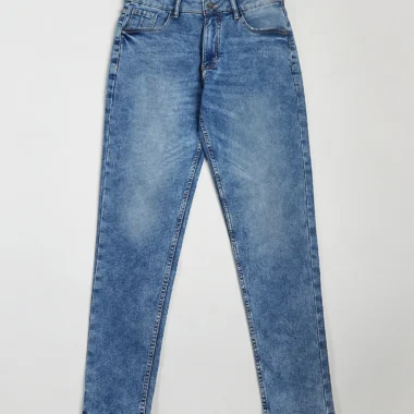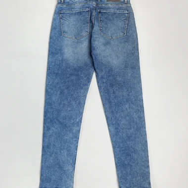 Product Description: Slim straight fit cotton stretch mid-rise denim jeans. This pant features 5 pockets, enzyme wash, zip closure and five loop waistband with button closure.