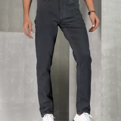 Cotton stretch slim straight fit 5 pocket jeans | Anchor Grey