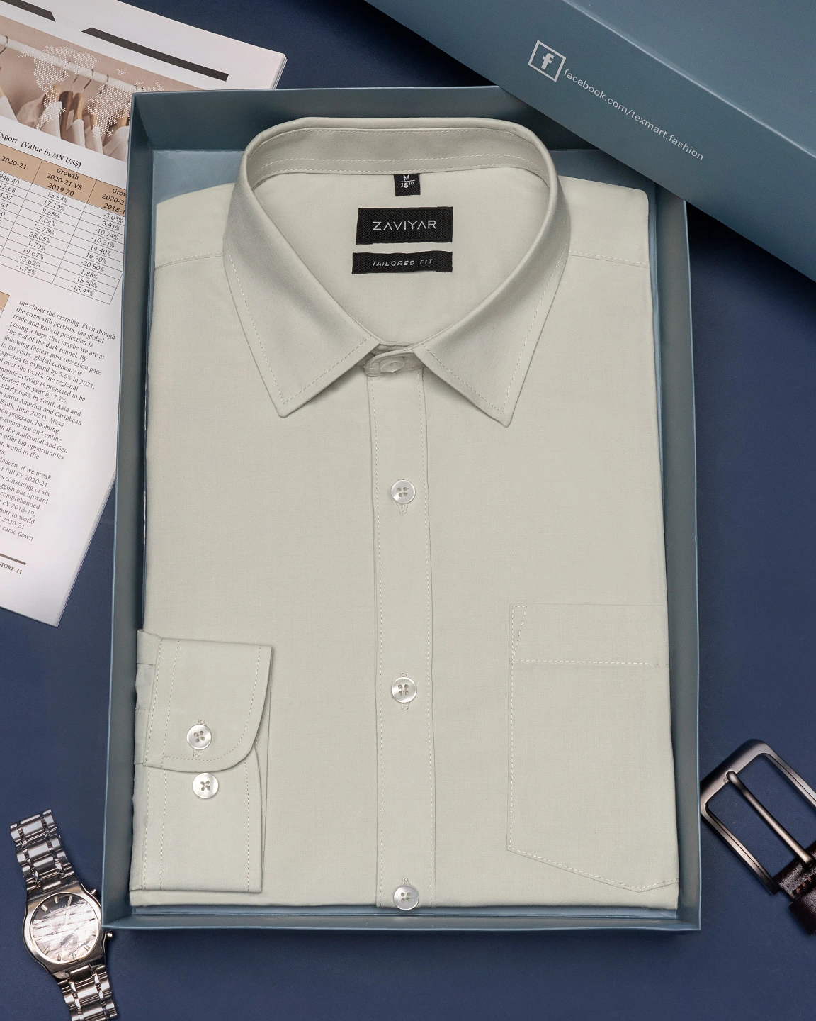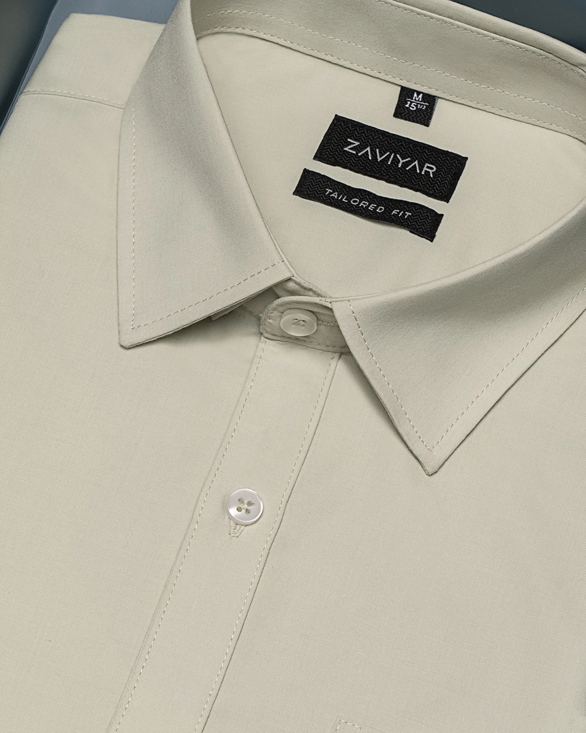 Luxury Giza cotton tailored fit woven formal shirt, Long sleeve, Front has a pocket, tie collar, front button opening French placket, Curved hem.