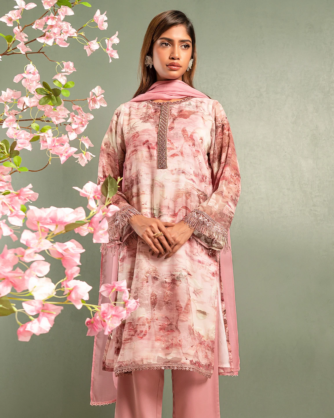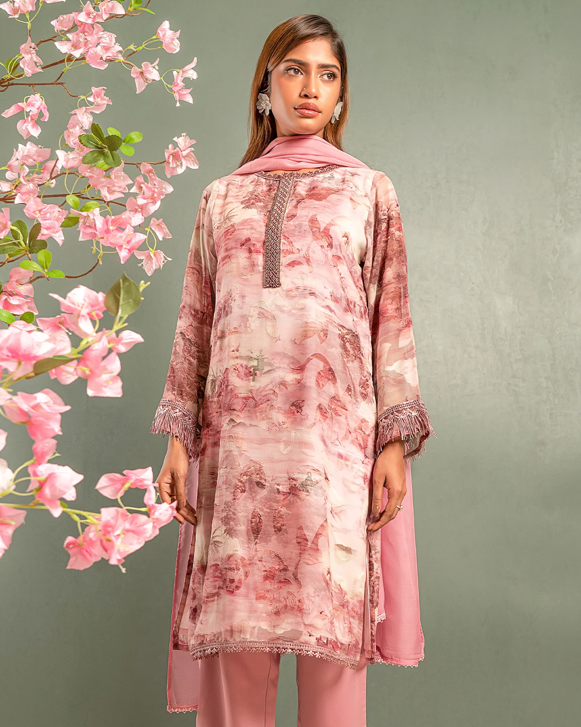 Embroidered Chiffon Fine Georgette Short Kameez | Crepe Pink