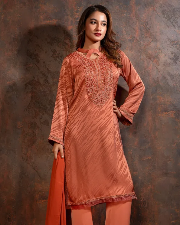 Embroidered luxury Double silk Kameez | Burnt Ochre