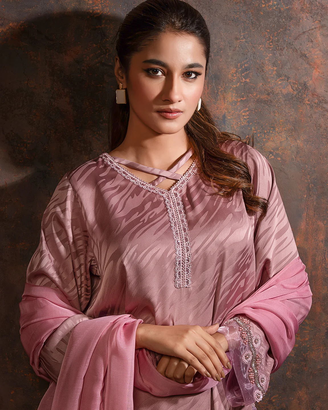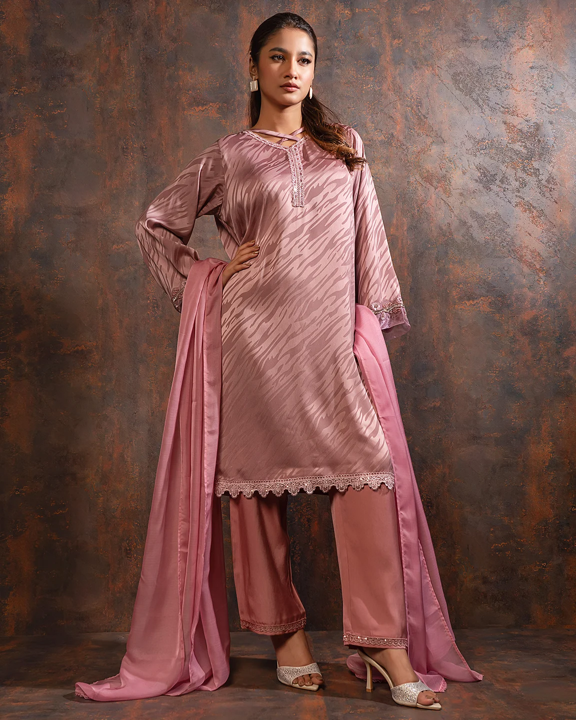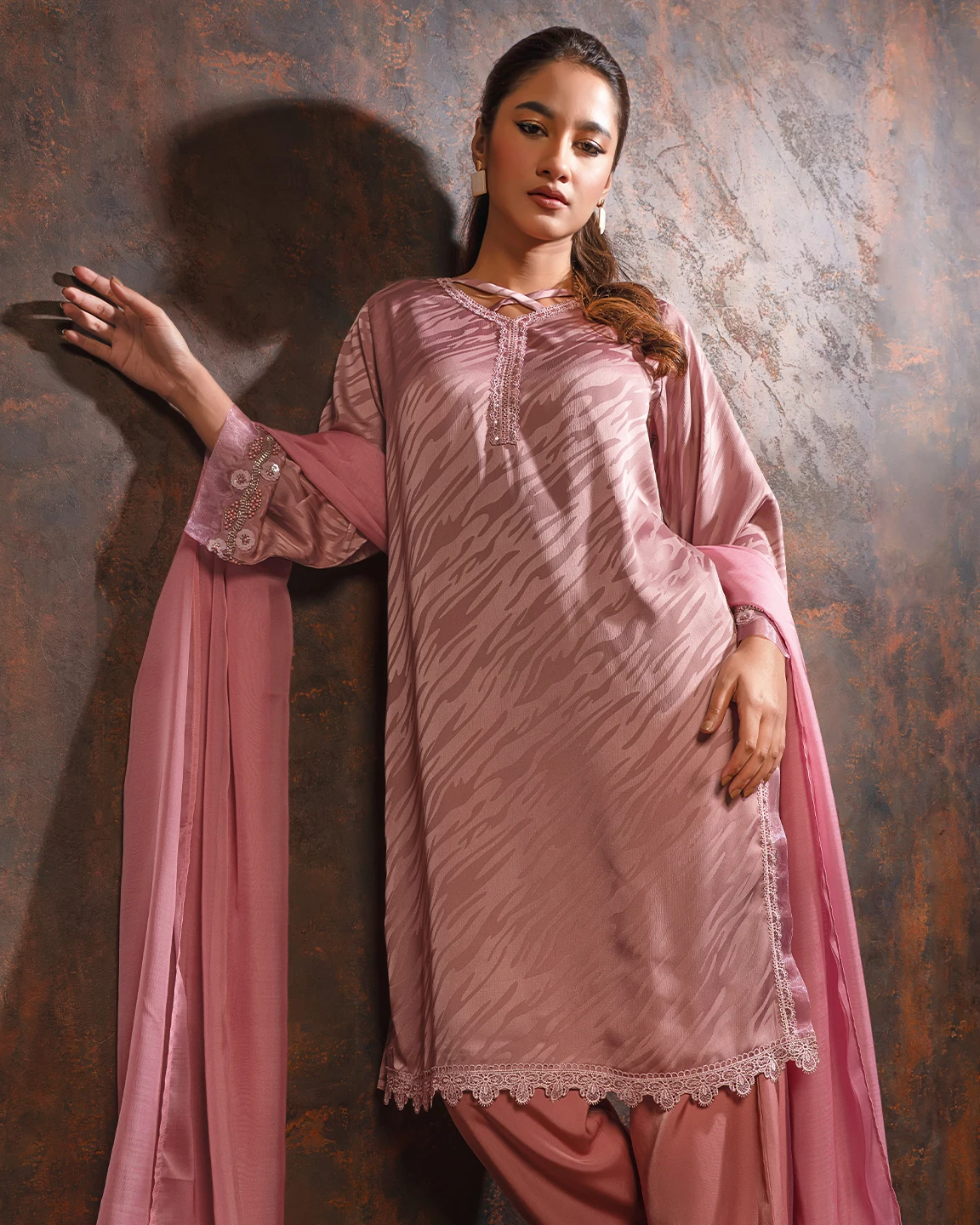 Embroidered luxury Double silk Kameez | Mauve