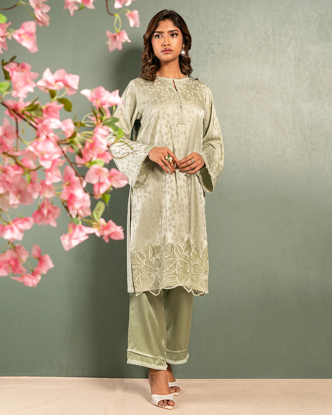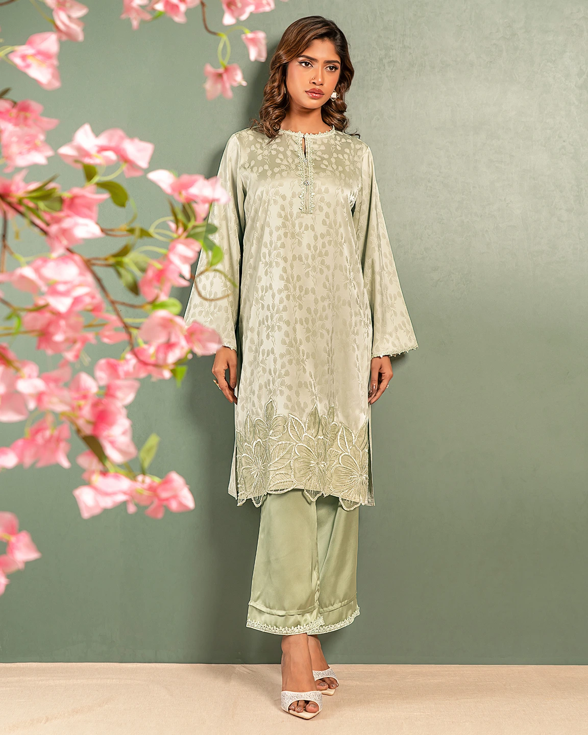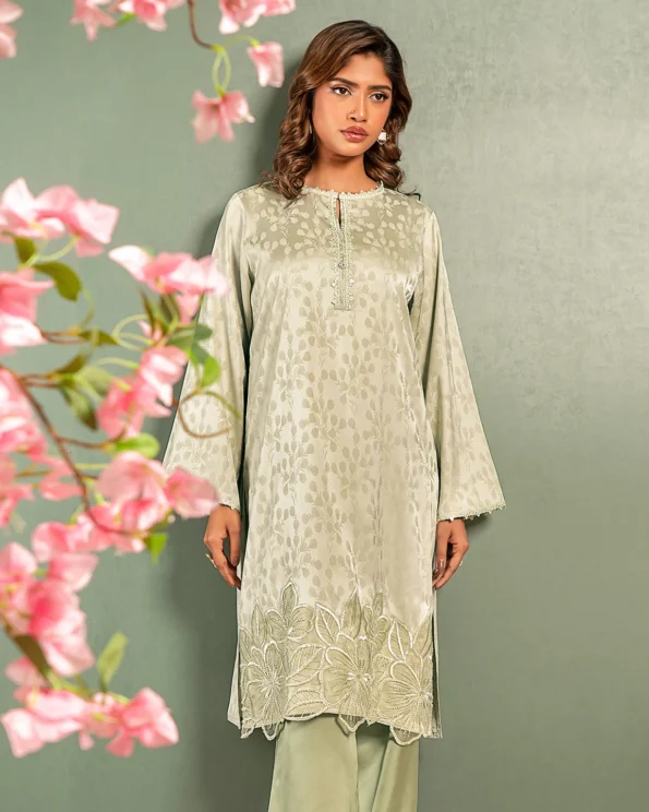 Embroidered Luxury Double Silk Short Kameez | Pastel green