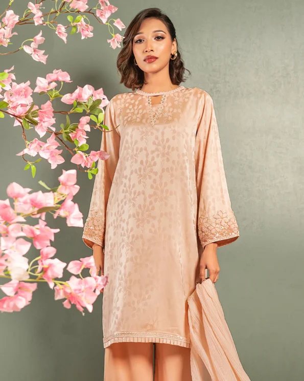 Embroidered Luxury Double Silk Short Kameez | Pink