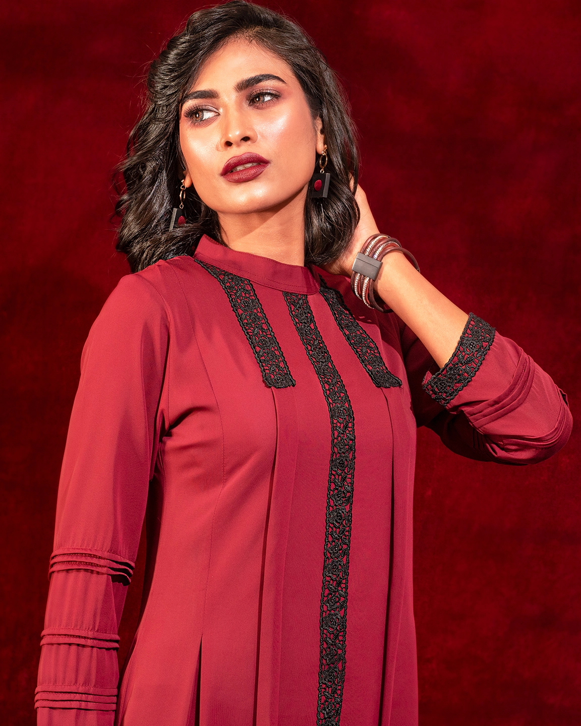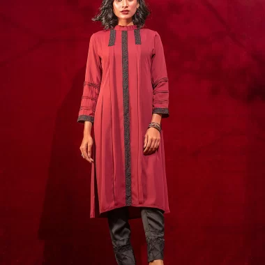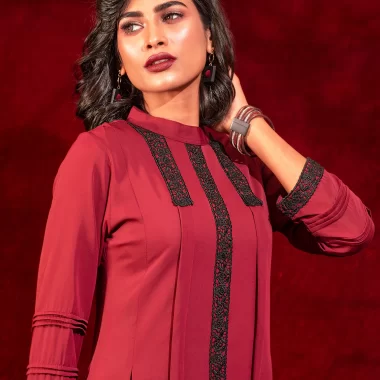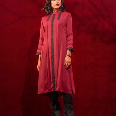Sold OutFemale A-line Long Kameez | Mahogany Red