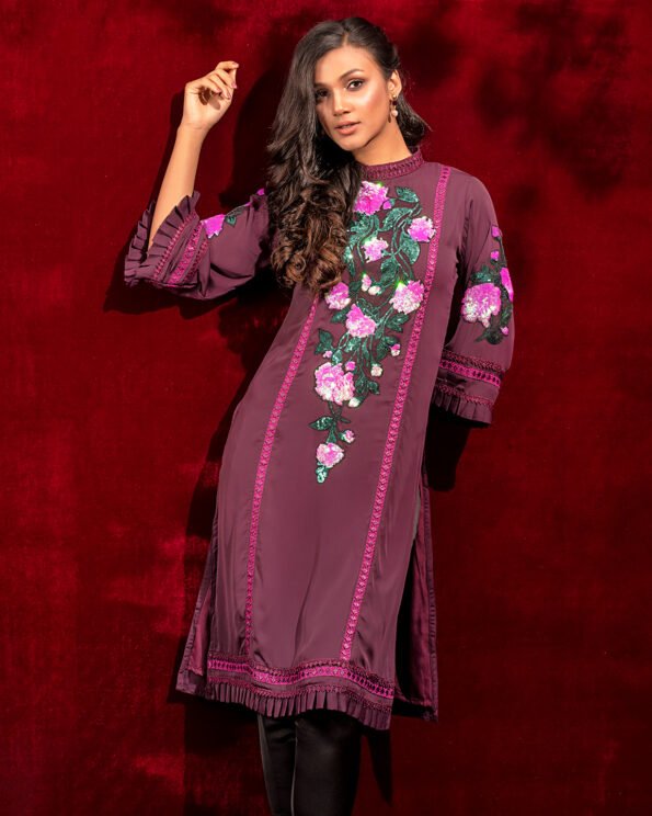 Sold OutFemale A-line Long Kameez | Resin Purple