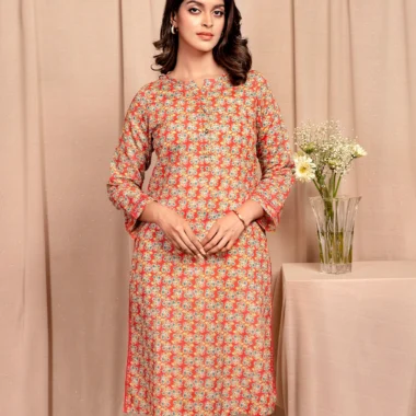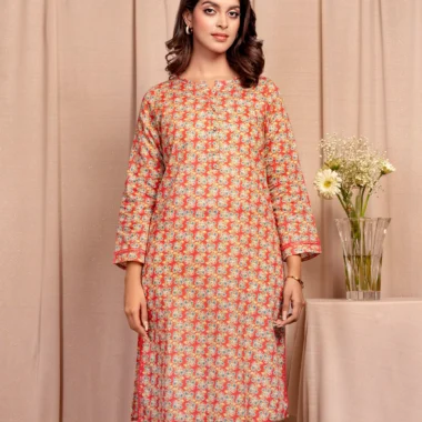Female A-line Round-Neck Details Long Kurta By AMNA | Mineral Red