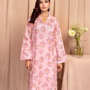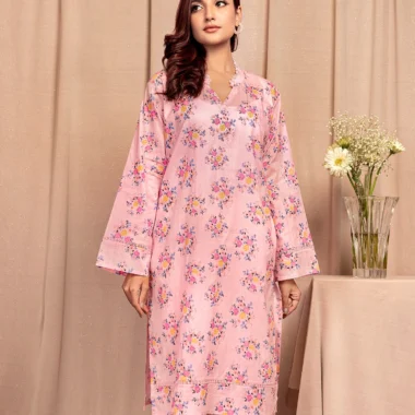 Female A-line Round Neck Details Long Kurta By AMNA| Pink