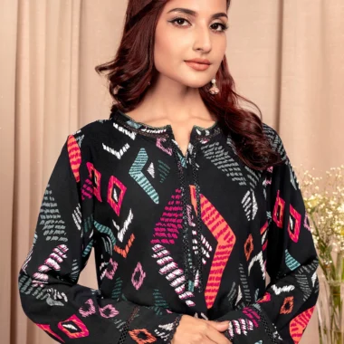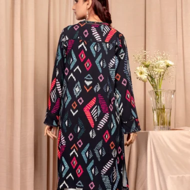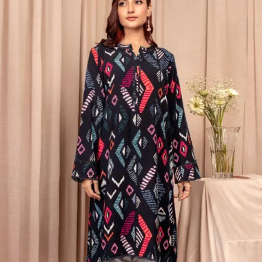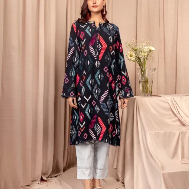 Fine Cotton A-line Short kamiz has Round-neck with join lace details , has front show button details, has full sleeve with join lace details, has hemline lace details, has back yoke with join lace details, has both side slits for easy to wear.