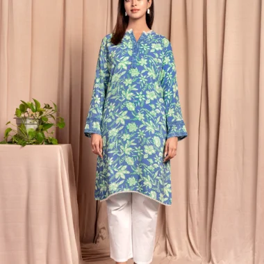 Female A-line Round-Neck With Lace Details Short Kurta By AMNA | Provincial Blue
