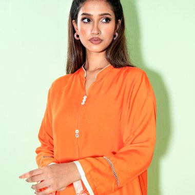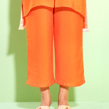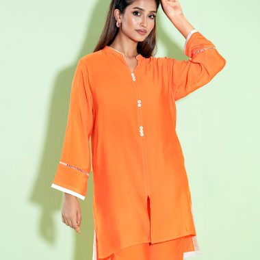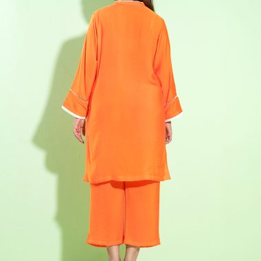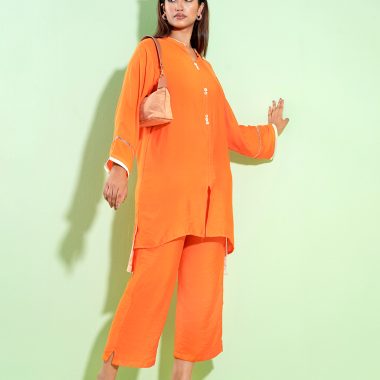 Female Band Collar Details Co-Ord Set | Blazing Orange