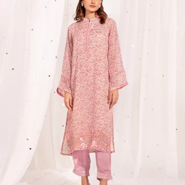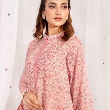 Female Band Collar- Neck Details Long Kameez | Light Pink