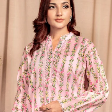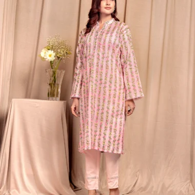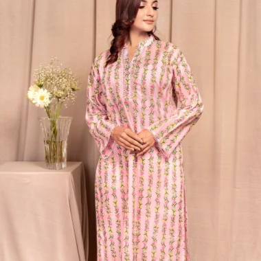 Female Band Collar-Neck Details Long Kurta By AMNA | Baby Pink