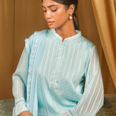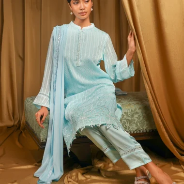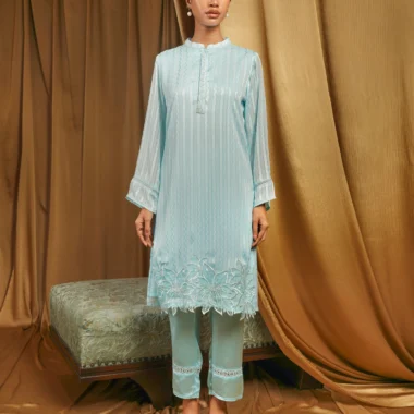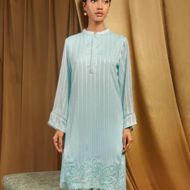 Female Band Collar- Neck Details Short Kamiz | Baby Blue