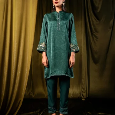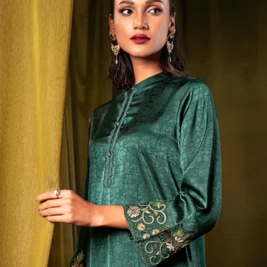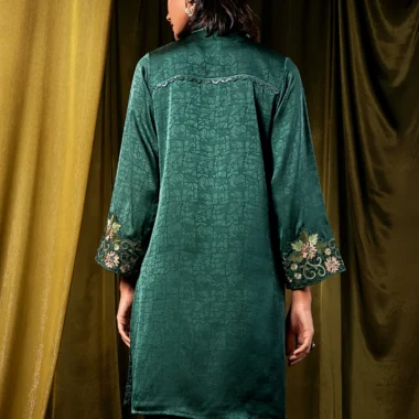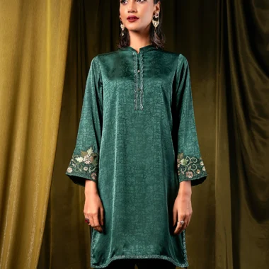 Female Band Collar- Neck Details Short Kamiz | Deep Sea Green
