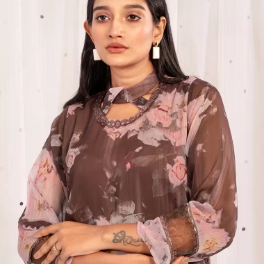 Fine Georgette Long Kameez has Band twisted Collar with lace Details, has hemline tissue with lace details, has both side lace details, has Full Sleeve with tissue and lace details, has both side slits with attached lining for comfort & easy.