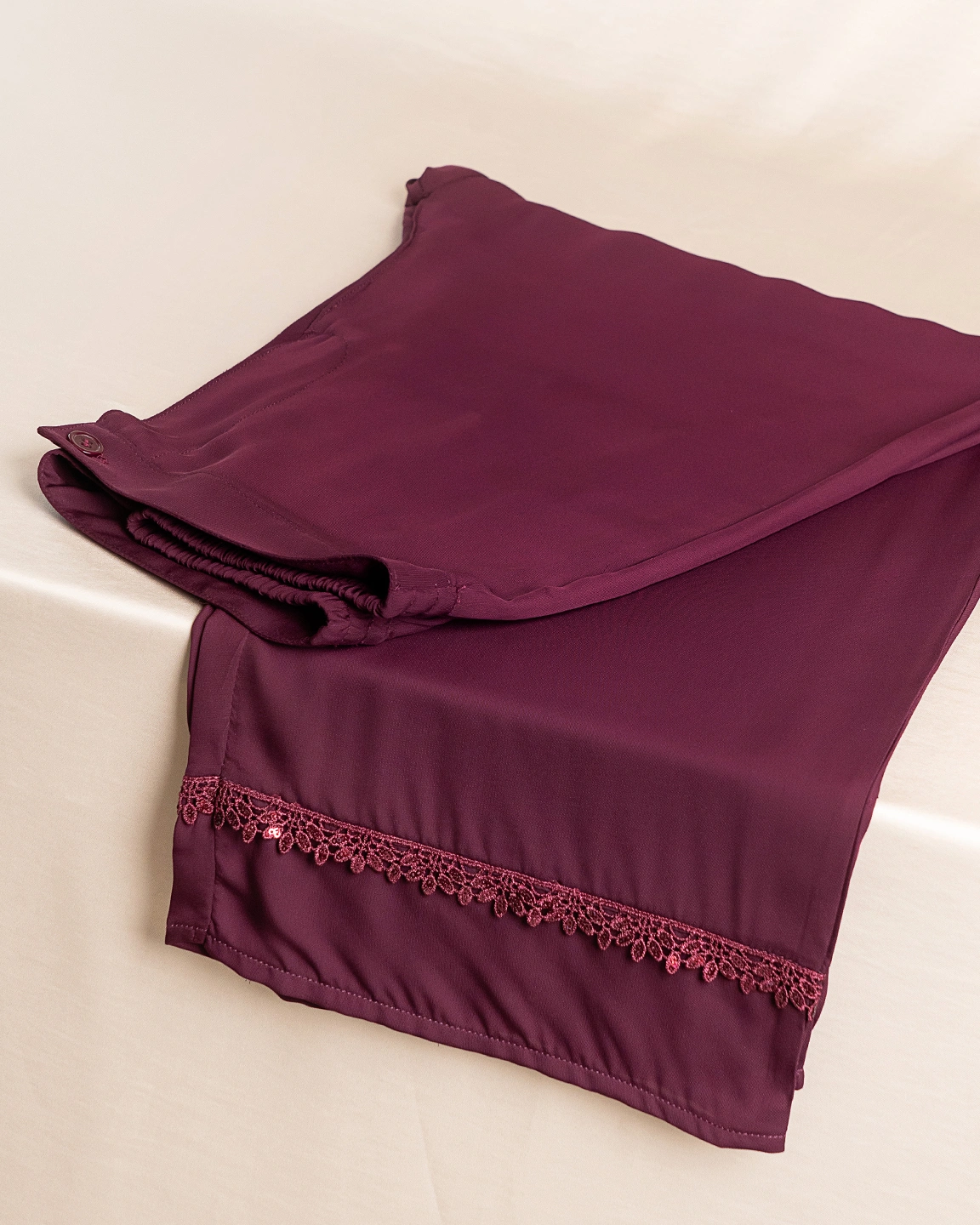 Product Description: A sleek Deep Brown bottom with a stretchable elastic waistband for flexible fit and a side opening with a concealed zipper, secured with a metal hook closure for added hold. Finished with a refined hem and delicate detailing, this bottom is perfect for pairing with kameez for festive-ready style.