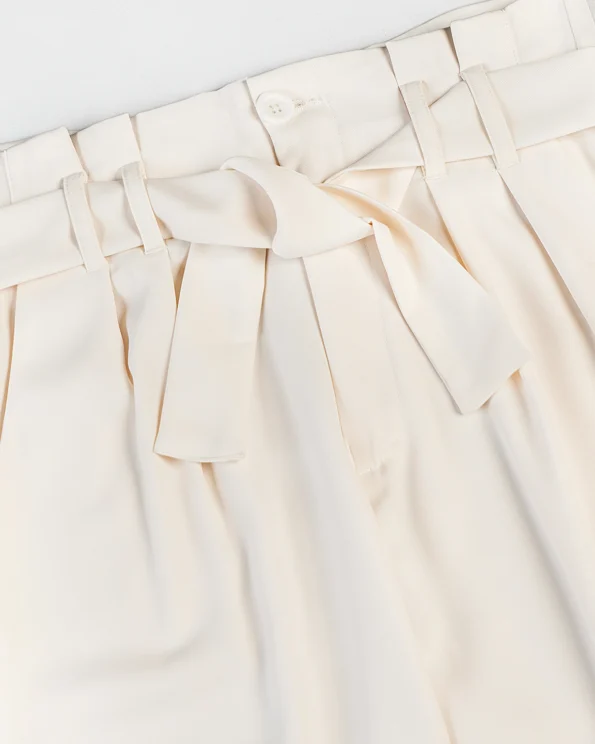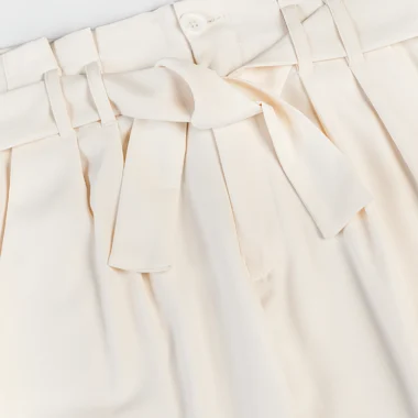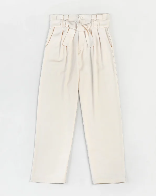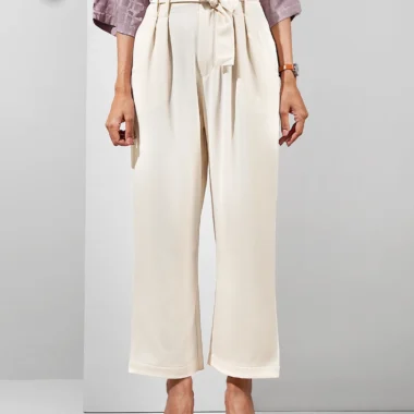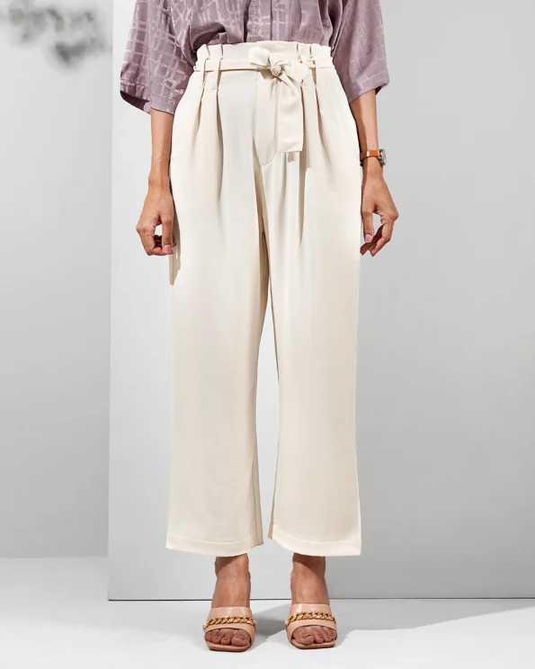 Female Bottom Wide Hem Details Double Georgette Straight Fit Pant | Cream White