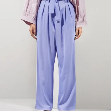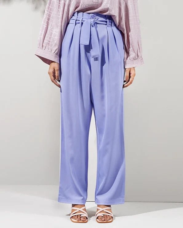Female Bottom Wide Hem Details Double Georgette Straight Fit Pant | Periwinkle