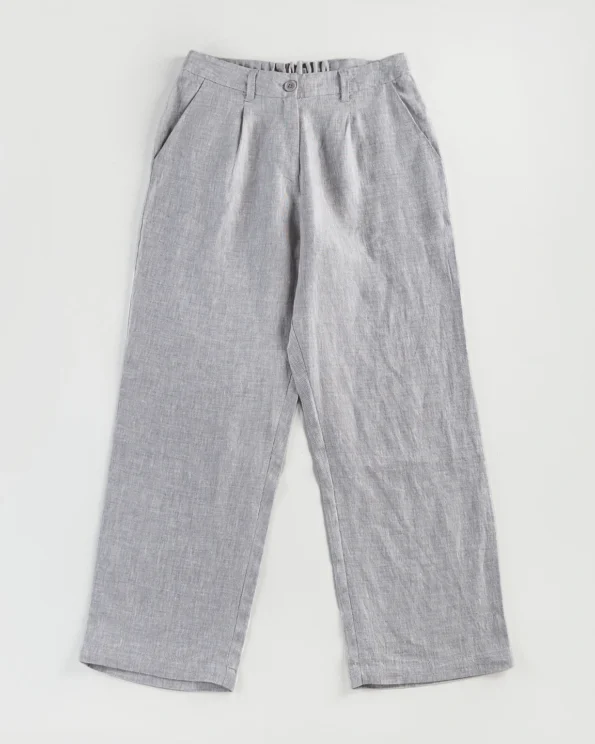 Product Details: Pure Luxury linen Loose fit bottom has wide hem details, front waist has one side pleat details, has front zipper with button details.