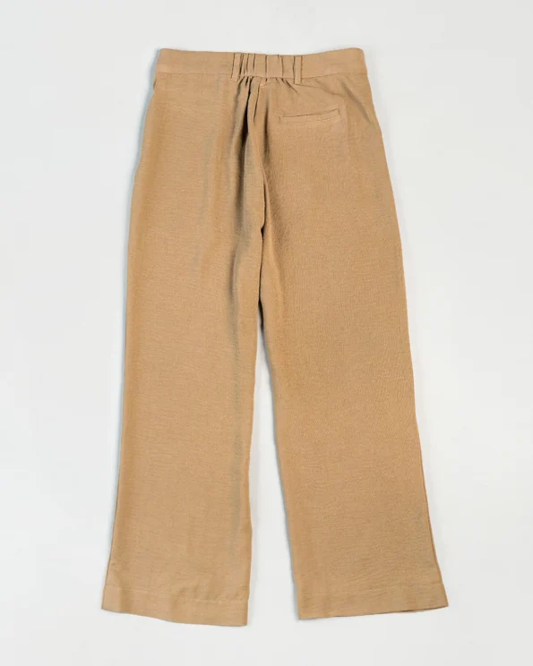 This rayon straight-fit pant features a wide hem, front zip with button closure, and a comfortable elastic back waistband. Designed with two side pockets and one back pocket, they offer a clean, relaxed silhouette ideal for everyday casualwear.