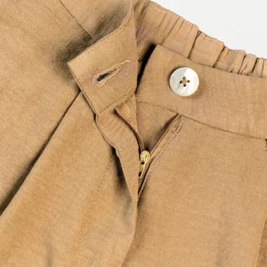 Elastic Back: The waistband has gathered elastic at the back, indicating a partially elasticized waistband for comfort and flexible fit.