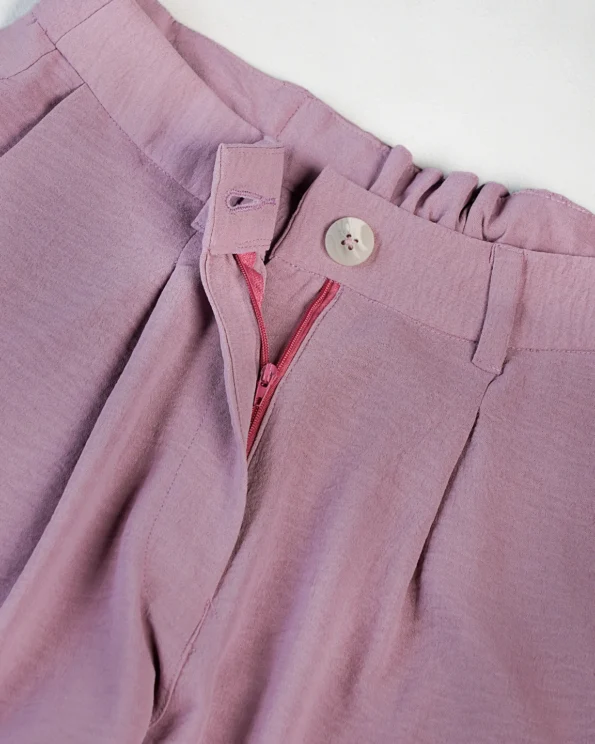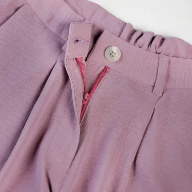 Elastic Back: The waistband has gathered elastic at the back, indicating a partially elasticized waistband for comfort and flexible fit.