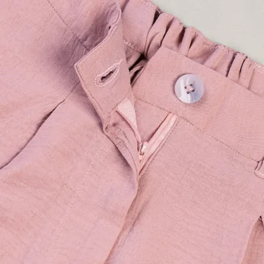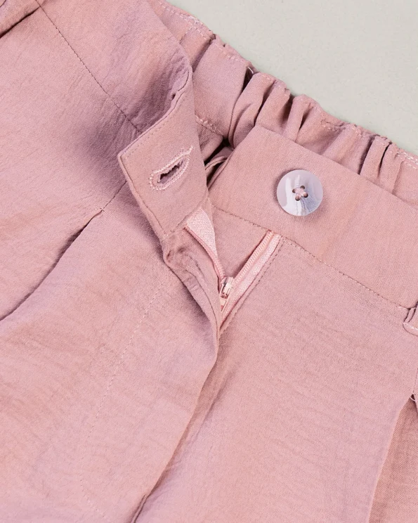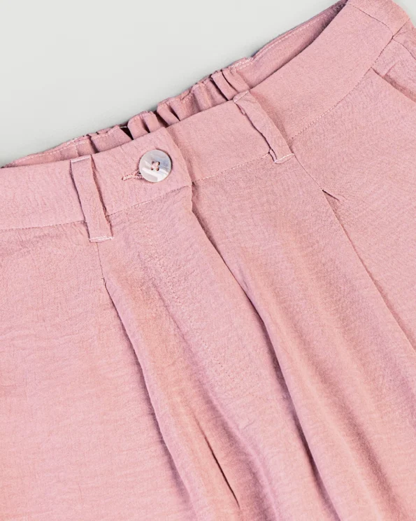 Elastic Back: The waistband has gathered elastic at the back, indicating a partially elasticized waistband for comfort and flexible fit.