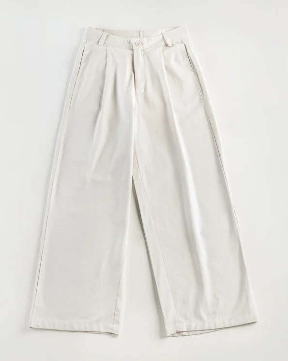 Female Bottom Wide Hem Details Straight Fit Pant | Cream White