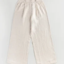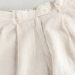Product Details: Pure Luxury linen straight fit bottom has wide hem details, front waist has one side pleat details, has front zipper with button details.
