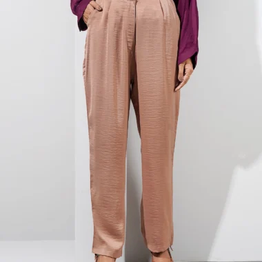Rayon Spandex Blend Straight Fit Bottom has wide hem details, front waist has one side pleat details, has front zipper with button details, has Slash.