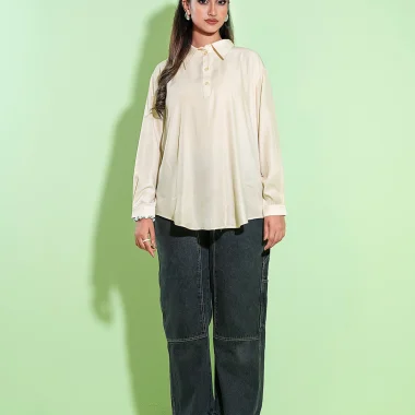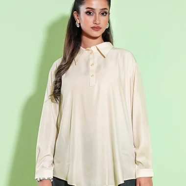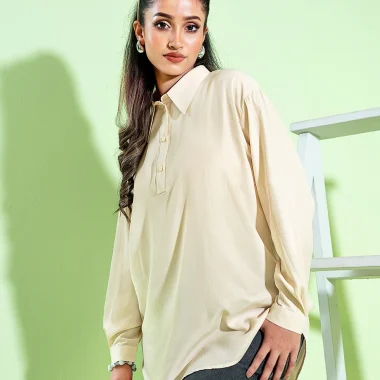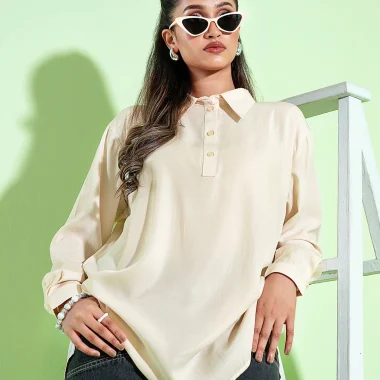 Georgette Blend Casual top has shirt collar with lace details, has center front button placket details, has full sleeve with cuff, back part has ups and down style details.